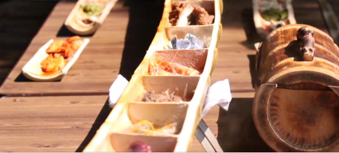 쭉쭉 하늘로 뻗은 대나무를 보면 승천하는 한 마리 ‘용(龍)’이 떠오른다 해서 대나무 마디마다 갖가지 음식들을 담아